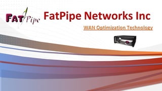 FatPipe Networks invented router clustering technology to provide reliable branch office connectivity without BGP programming. It offers solutions for bandwidth aggregation, WAN optimization, traffic prioritization, automatic failover, and security. FatPipe has offices worldwide and provides products like XTREME, WARP, MPVPN, and IPVPN that ensure network redundancy, reliability, and security through multiple connection options.