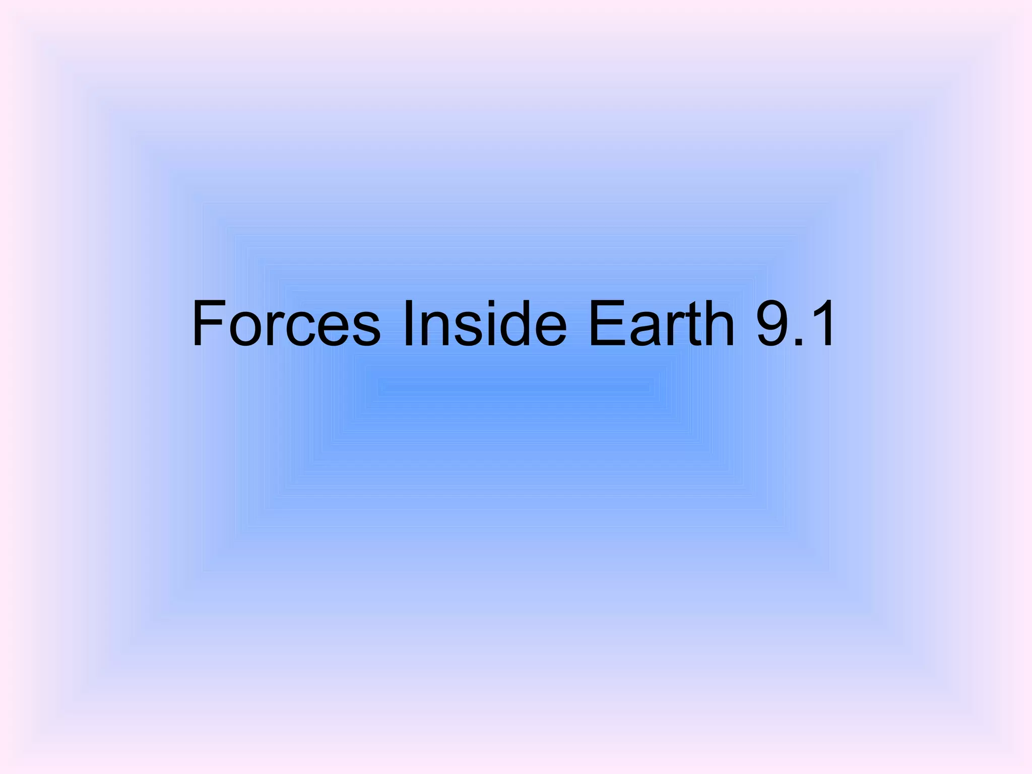 Forces inside the Earth put stress on rocks, causing faults where rocks bend and break along surfaces. There are three main types of faults: normal faults where tension pulls rocks apart, reverse faults where rocks are forced up over other rocks, and strike-slip faults where rocks slide past each other horizontally. Earthquakes occur when built-up stress causes rocks along faults to break and release vibrations at the surface.