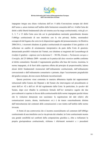La Corte Costituzionale della Repubblica Ceca ha dichiarato l'incostituzionalità delle norme che attuano la direttiva europea 2006/24/CE sulla data retention, seguendo un trend già osservato in altri paesi. La decisione si basa su preoccupazioni riguardanti la violazione dei diritti fondamentali e della vita privata, esprimendo dubbi sulla conformità delle pratiche nazionali rispetto agli standard europei. Tuttavia, la sentenza solleva interrogativi sulla cooperazione tra ordinamenti, poiché inibisce l'applicazione di normative europee, esponendo la Repubblica Ceca al rischio di procedimenti di infrazione.