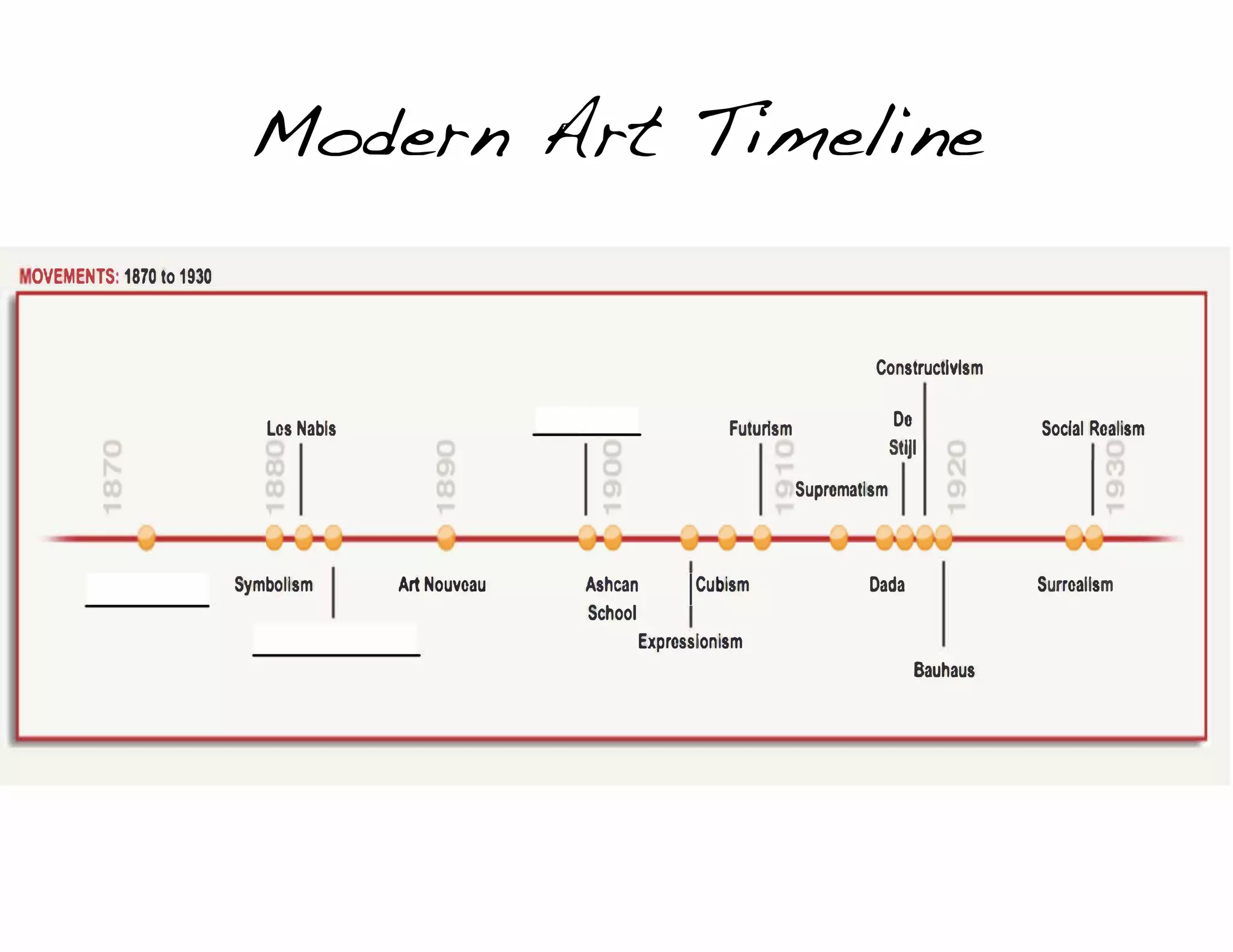 The document discusses several major art movements between 1870 and 1930 including Impressionism, Fauvism, Cubism, Expressionism, Constructivism, Dada, Bauhaus, and Surrealism. It provides more detailed information about Impressionism and Fauvism, noting that Fauvism originated in France around the turn of the 20th century and was characterized by the expressive and aggressive use of pure, unnatural colors. Key Fauvist artists mentioned are Henri Matisse, a leader of the movement, and Andre Derain, both of whom transformed subjects with bold, unrealistic colors.