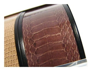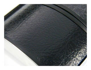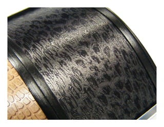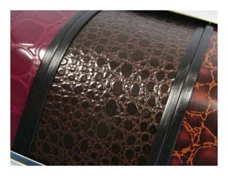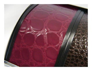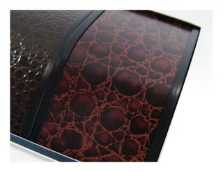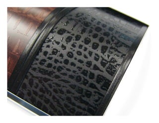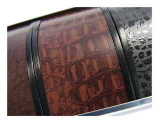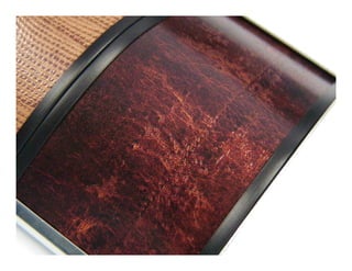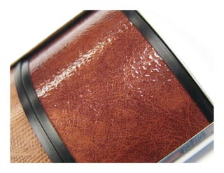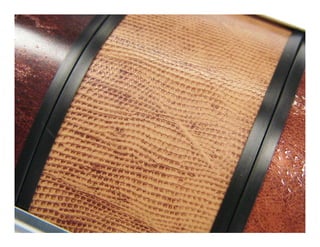 The document discusses faux leather finishes on aluminum designed to imitate natural materials and their innovative applications. It highlights mood boards that emphasize mechanical processes, color, and texture trends to inspire surface creations for trim or nameplate usage. Contact information for Northern Engraving is also provided.