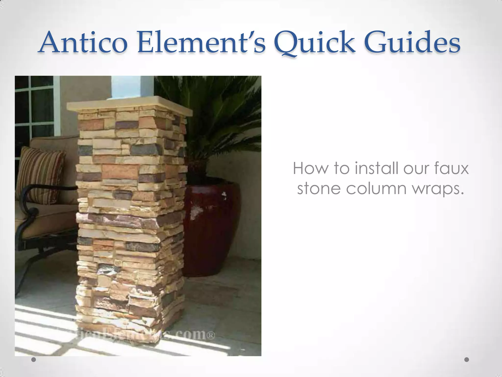 This document provides a step-by-step guide for installing faux stone column wraps, including necessary parts and tools. It details the process from creating a frame to securing panels and installing caps, with reminders to caulk gaps for water protection. Additionally, it offers options for stacking posts and advice on contacting customer support for further assistance.
