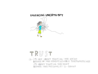 This document discusses how fear has led society to manufacture itself away from its true self through compulsory rules and standards designed to provide a false sense of safety and control. This broken feedback loop has led to more problems like hunger, homelessness, and oppression. The document suggests giving each individual soul the freedom and trust to be the feedback loop through self-reflection rather than external rules, and allowing ourselves to immerse in our true selves rather than numbers and standards. This may provide a path for all of humanity to have a "do-over" and leapfrog to a better future.