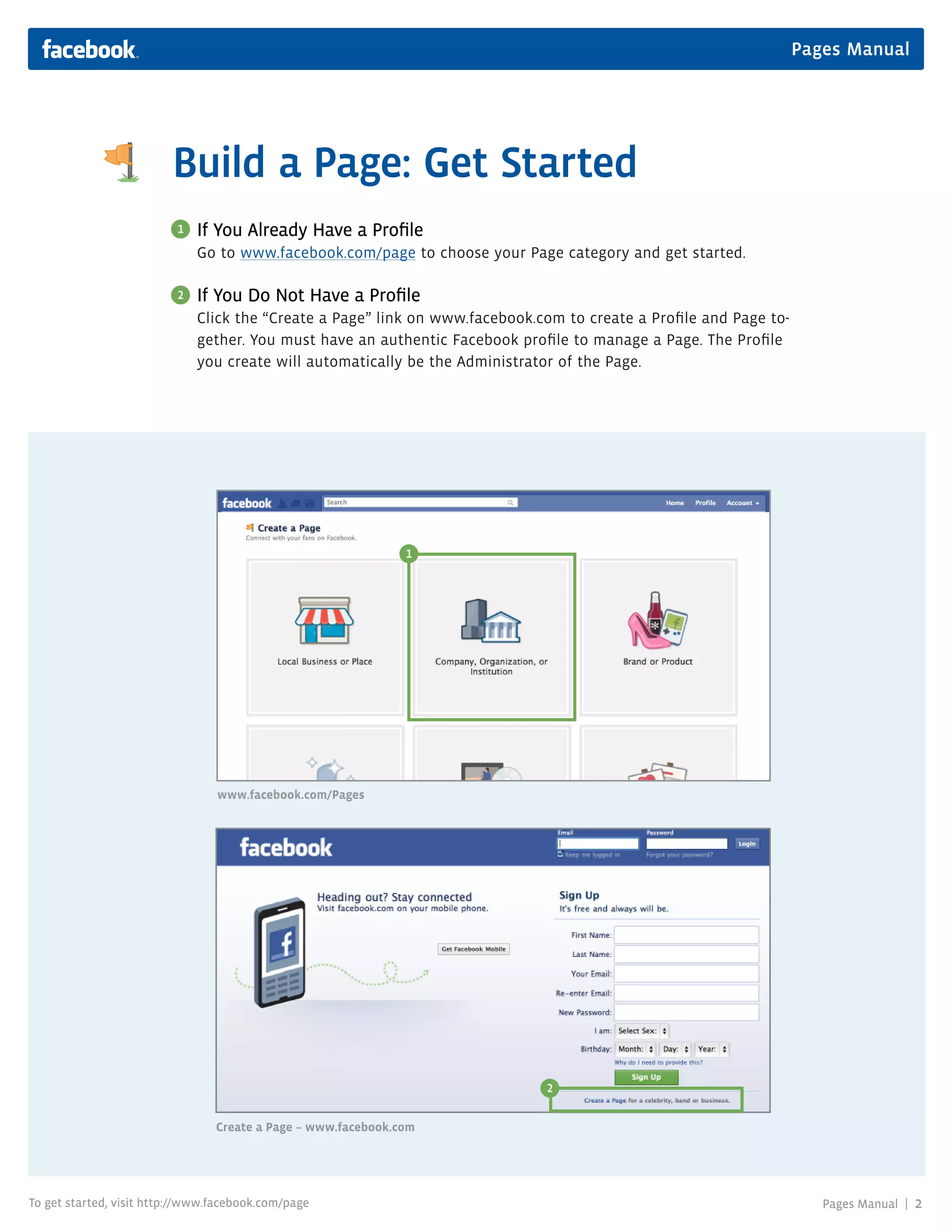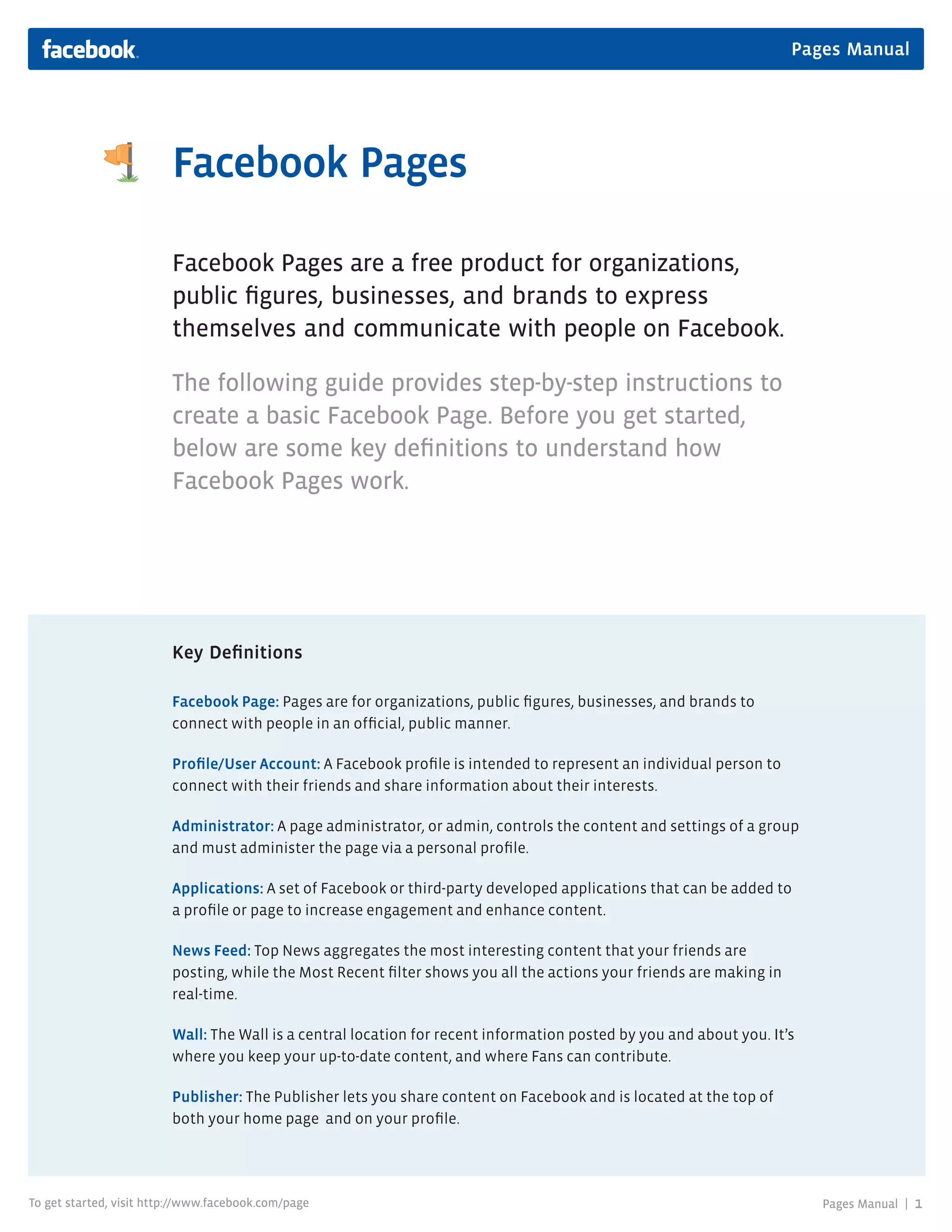 1) Facebook Pages allow organizations, public figures, businesses and brands to connect with people and express themselves on Facebook. The document provides instructions for creating a basic Facebook Page.