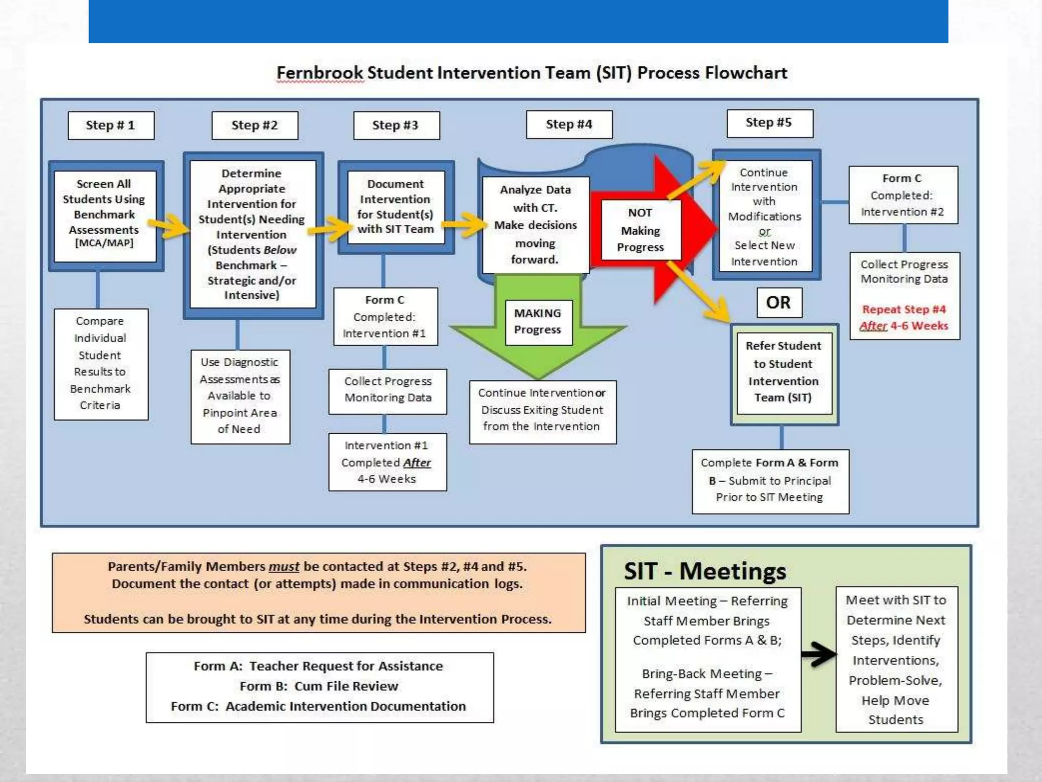 3. The SIT process involves recommending students for intervention, completing forms to describe the student's needs and concerns, designing and implementing intervention plans with goals and monitoring procedures, and following up to evaluate intervention effectiveness and make adjustments if needed.