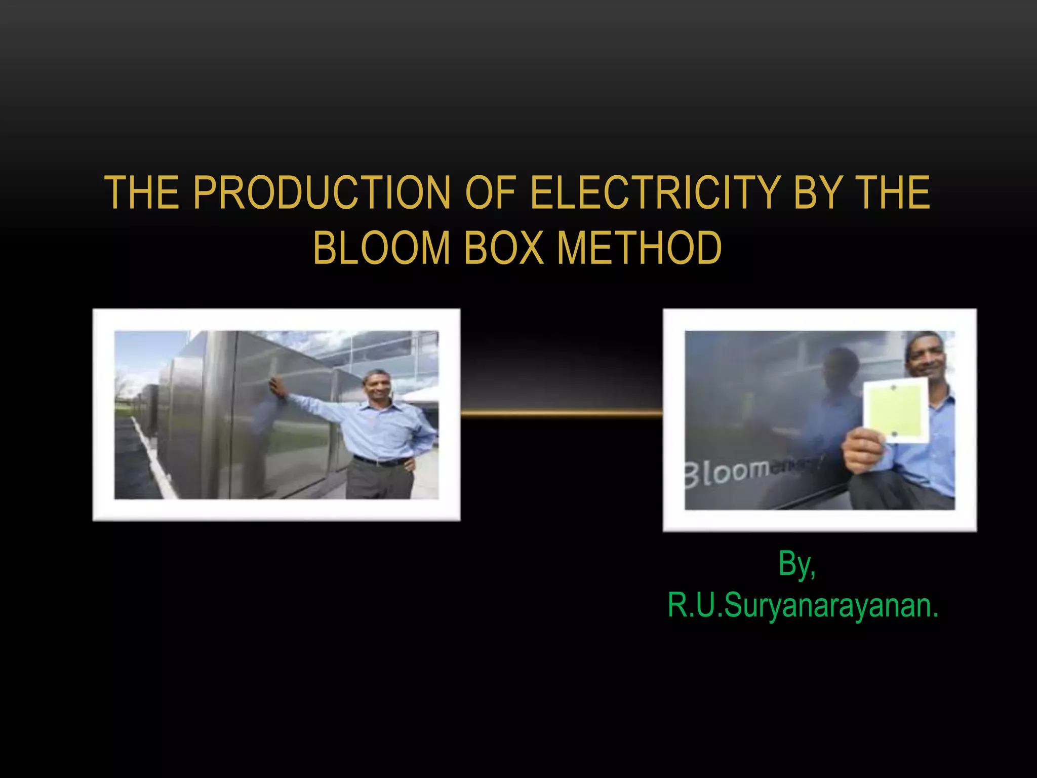 Bloom Box is an electricity generator created by BloomEnergy in 2010 that uses fuel cells to produce electricity through a chemical reaction without combustion. It has higher efficiency and lower CO2 emissions than traditional power plants by converting natural gas or biogas into electricity. The Bloom Box server is small, produces electricity on-site which eliminates transmission losses, and requires no water for normal operation, offering significant water savings compared to other generation methods. Google was the first customer to receive Bloom Box fuel cell servers in 2008.