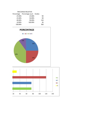 The document contains data from a sample distributed into 4 intervals. It provides the frequency, relative frequency, and cumulative relative frequency for each interval. A chart shows the distribution of the sample into the 4 intervals.