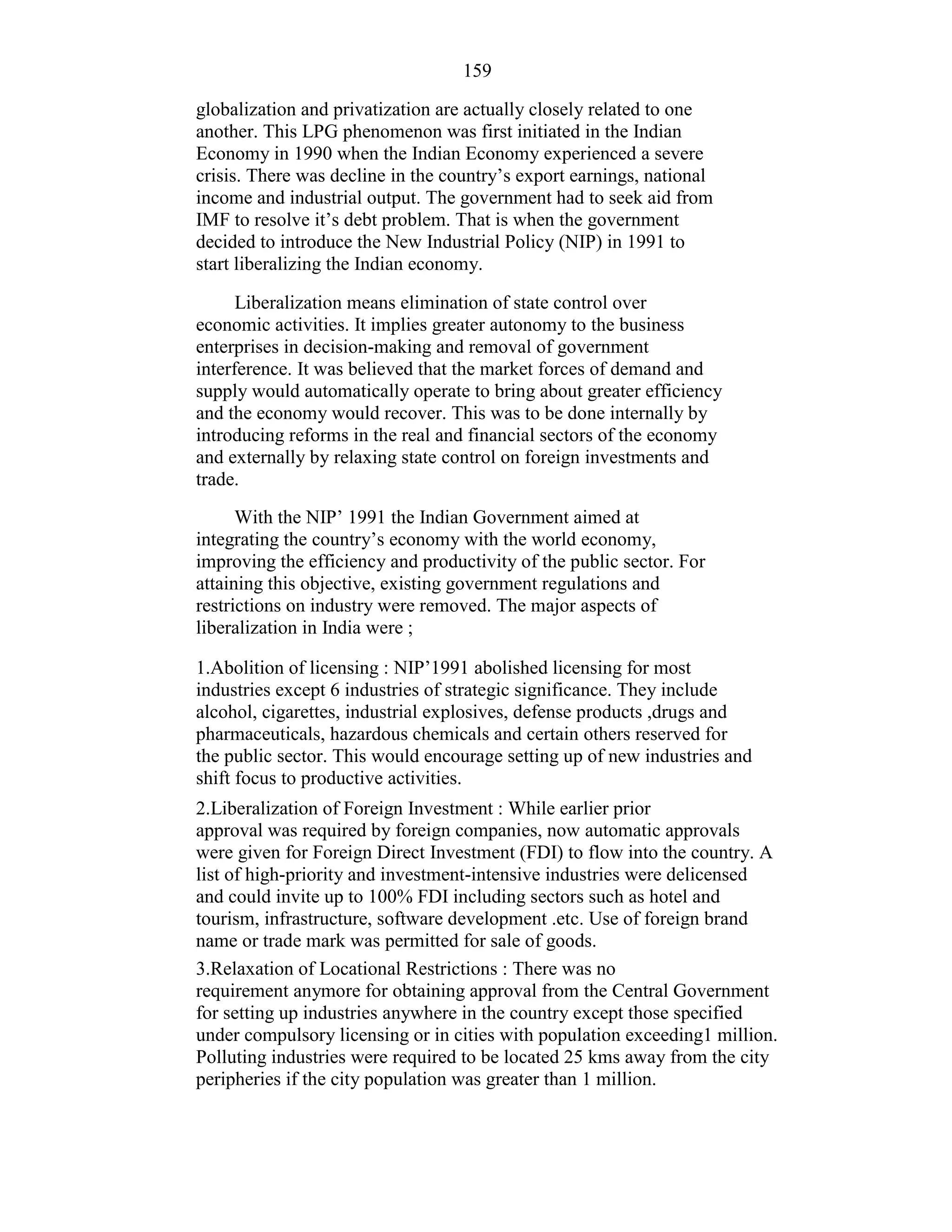 This document provides an overview of the concepts of liberalization, privatization, and globalization. It discusses how liberalization aims to reduce state control over economic activities to increase business autonomy and market forces. Privatization transfers control of public sector resources to private sector ownership to improve efficiency. Globalization integrates national economies through increased cross-border trade, investment, and cultural exchange. The document outlines the major reforms introduced in India in 1991 to liberalize and integrate its economy, including reducing tariffs and opening markets to foreign investment. Both opportunities and risks of globalization are presented.