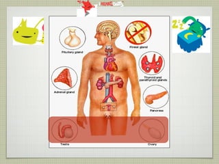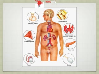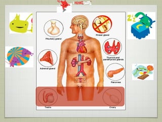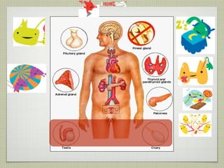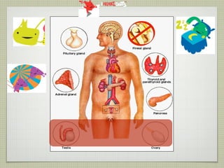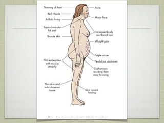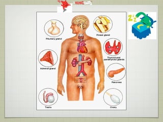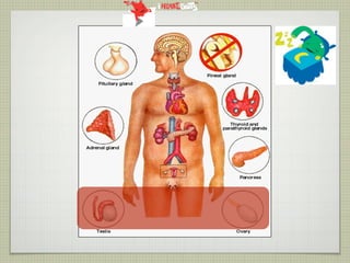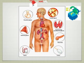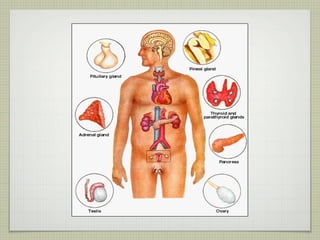 This document provides an overview of the endocrine system and various endocrine glands and hormones. It discusses the anatomy and physiology of key glands like the pituitary, thyroid, parathyroid, adrenal and pancreas. It also presents several case studies relating to disorders of these glands, such as Cushing's syndrome, Graves' disease, hypothyroidism, hyperparathyroidism, and diabetes mellitus. The document aims to discuss endocrine diseases, their treatments, and associated complications.