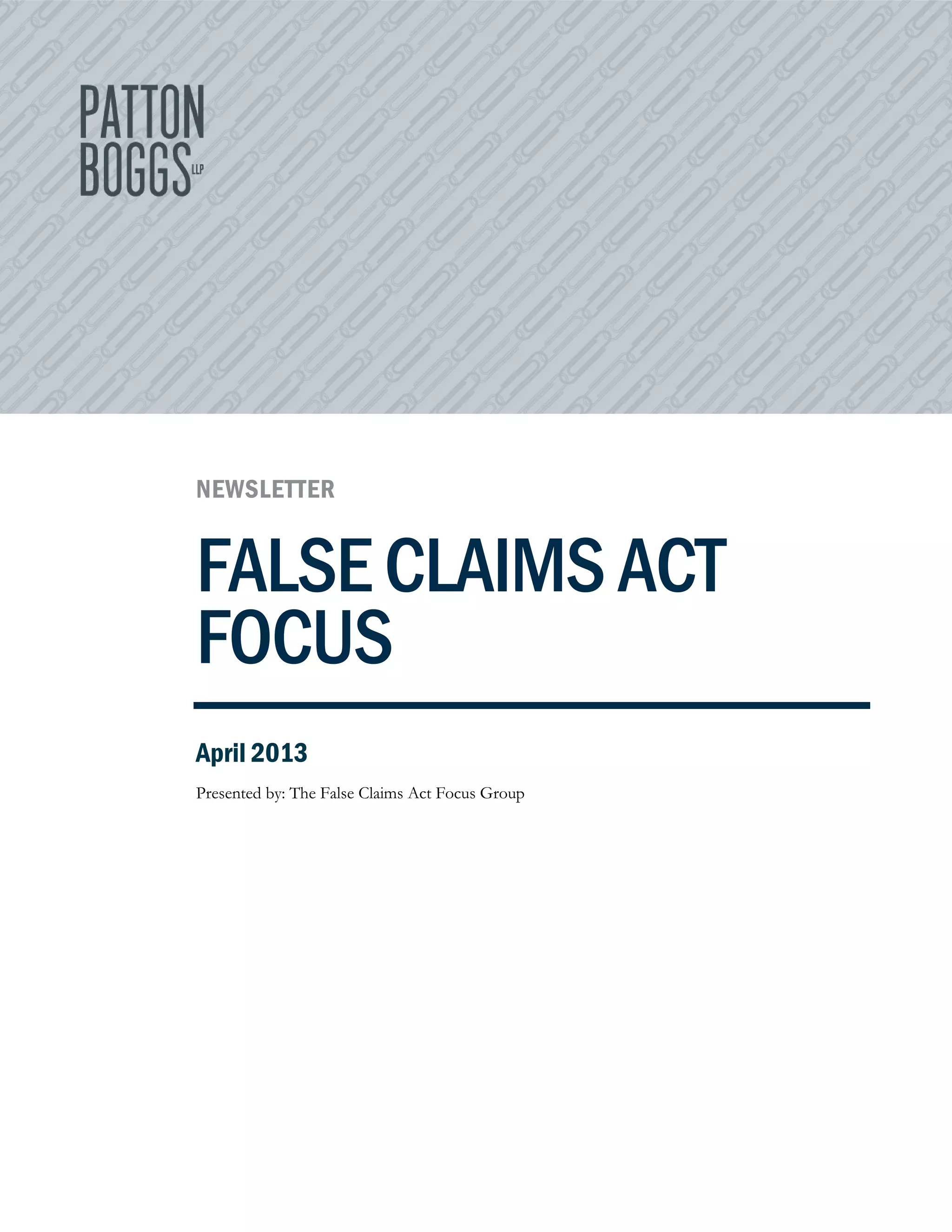 This document summarizes a newsletter about recent developments related to the False Claims Act (FCA). It discusses a case involving a government contractor accused of violating the Byrd Amendment, resulting in false claims under the FCA. It also discusses record recoveries by the Department of Justice and Department of Health and Human Services in FCA cases in the healthcare sector totaling $4.2 billion. Additionally, it analyzes recent court cases related to retaliation claims under the FCA's whistleblower protections and the potential implications of a case related to off-label drug promotion cases.