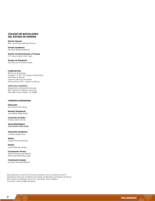 This document provides information about an English language textbook being used in a Mexican high school. It includes the publication details, names of administrators and those involved in writing and editing the textbook. It also lists the number of hours and credits allocated to the English course and includes sections for student information. The textbook is divided into three blocks covering dictionary use, composition, and literature. It provides learning activities, explanations of concepts, and examples within each section.