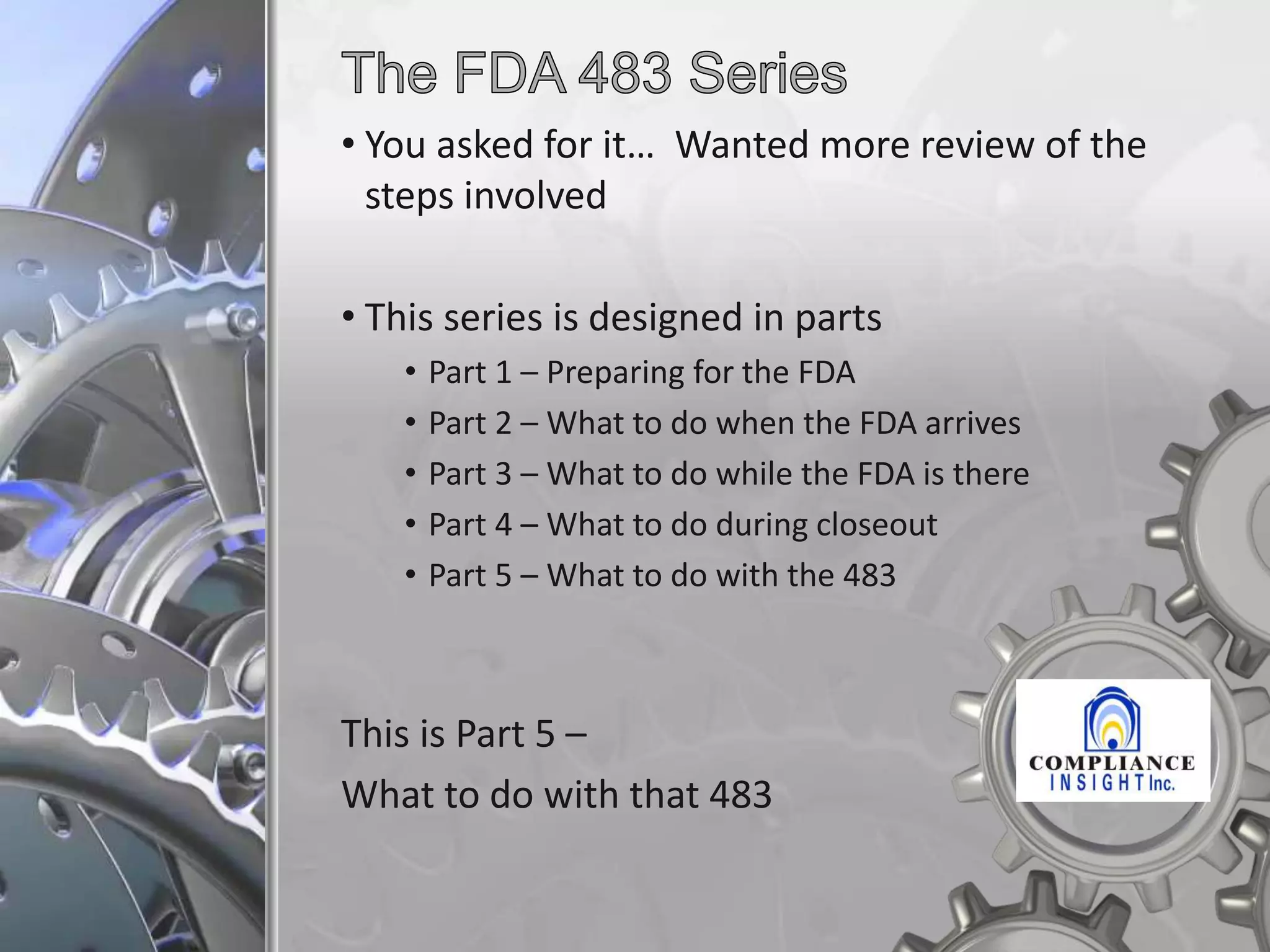 This document discusses how to respond to an FDA Form 483, which details observations from an FDA inspection. It recommends developing a team to work on the response within the required 15-day timeframe. The response should systematically resolve all observations, include any documentation of changes made, and address how products are acceptable. It also advises having the response reviewed by others and possibly legal counsel. Management should provide a cover letter, and the response should be delivered before the deadline using return receipt to confirm.