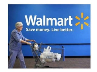 The document compares sales and earnings figures for Walmart stores in several countries. In the US, Walmart has $374.5 billion in sales and $12.9 billion in earnings from 6,800 stores worldwide. In France, Walmart has $130 billion in sales and $5.2 billion in earnings from 87,422 stores worldwide. In the UK, Walmart has $102.6 billion in sales and $5.5 billion in earnings from 3,729 stores worldwide. In Germany, Walmart has $101 billion in sales and $1.5 billion in earnings from 2,221 stores.