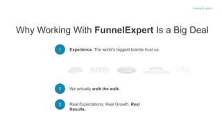 The document discusses how sales funnels can help businesses improve lead generation and monetization. It notes that 80% of sales require multiple follow-ups, but many businesses do not have systems in place for nurturing leads over time. The document then outlines the three pillars of lead generation and monetization as traffic acquisition, lead capture, and funnel/lead nurture. It provides examples of how a sales funnel approach can generate significantly more sales than a one-time promotional campaign by capturing leads and nurturing them through multiple touchpoints over time.