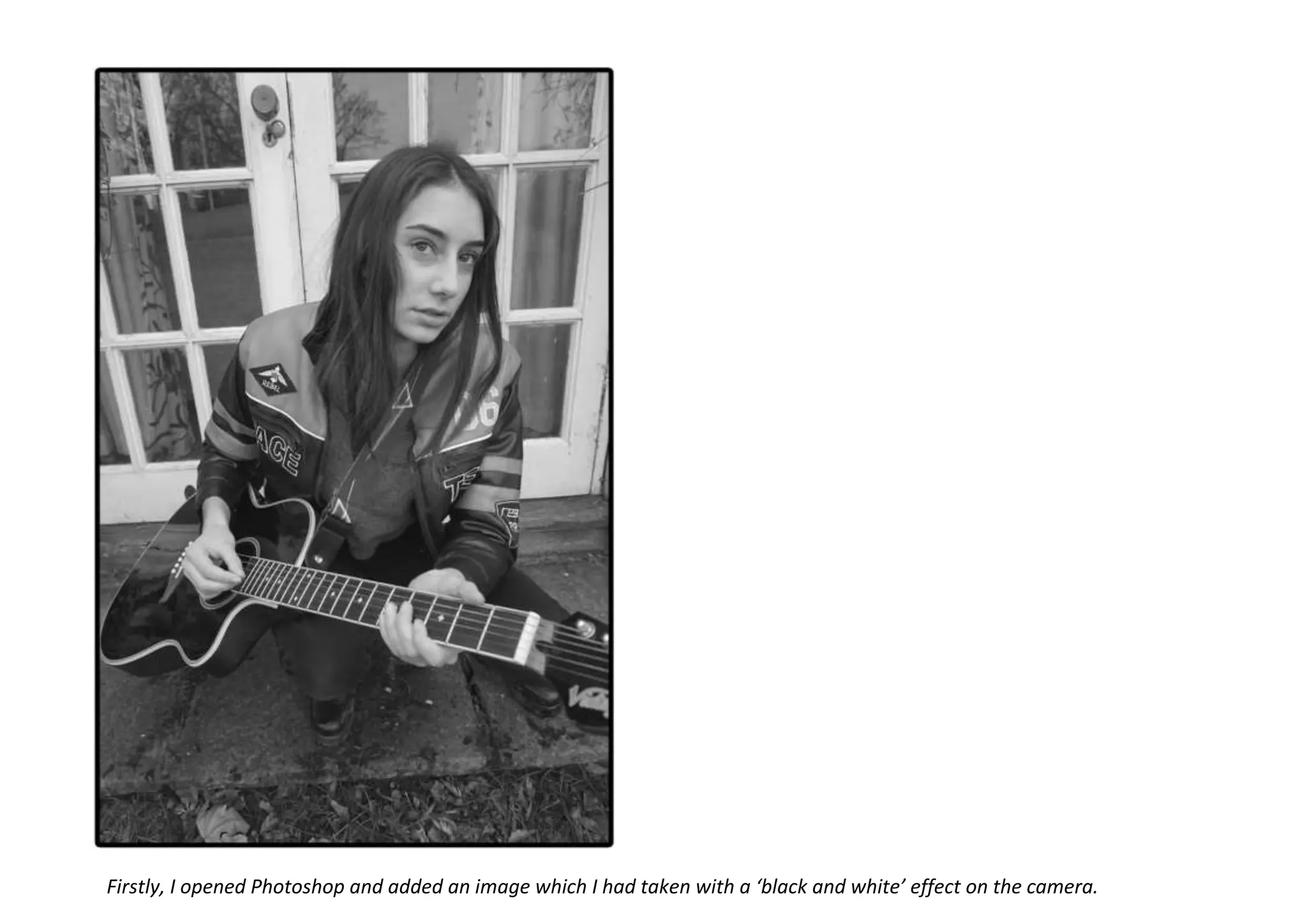 The document describes the steps taken to lay out an article in Photoshop, including adding an image, title/page elements, introduction and body text in different colors, pull quotes, and additional details like a website address and photo. The key points were adding different elements, formatting text in colors, and including additional visual details.