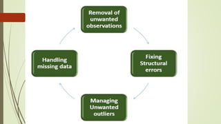 Feature engineering is a machine learning technique that uses data to create new variables not present in the training set. It involves techniques like outlier detection and removal, one hot encoding, log transforms, dimensionality reduction using PCA, handling missing values, and scaling. Outliers are unusual data points that differ significantly from other samples and can occur due to errors or be legitimate variations, while percentiles describe the value a given percentage of values are lower than.