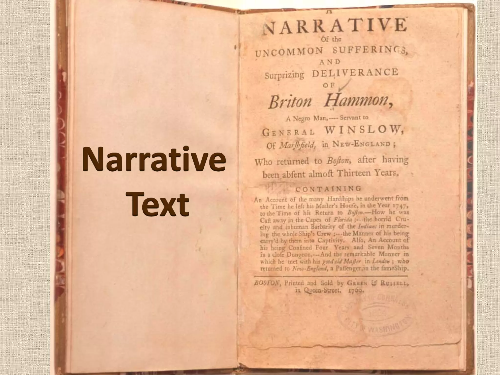 The document outlines the key elements of a narrative story structure, including an orientation that introduces the main character and setting, a complication that introduces a problem, and a resolution where the problem is ultimately solved after a series of events. It also includes questions to consider for characters, setting, problem, and solution when constructing a narrative.