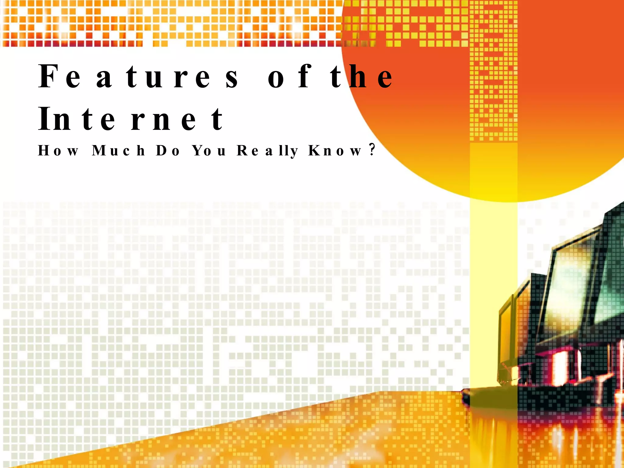 The document provides an overview of several key features and functions of the Internet, including chatting, email, file transfer protocol (FTP), newsgroups, social networking, and telnet. It discusses how chatting allows real-time communication between users, how email is one of the most used functions and can be sent to multiple addresses, and common problems with email like spam and viruses. It also outlines that FTP is used to transfer files, newsgroups are public message boards on specific topics, social networking focuses on online communities, and telnet formerly allowed remote computer access.