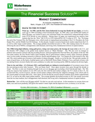 The document provides a historical overview of global stock market performance over the past several decades from the 1960s to 2011. It notes that the 1980s, 1990s, and 2000s brought economic and political turmoil, including high inflation, currency crises, two Gulf Wars, and two major stock market crashes. However, despite downturns, global stock markets provided positive returns overall for investors in the 1980s, 1990s, and late 1990s/2000s. The document concludes that while the next 20 years remain uncertain, investors can prepare by paying down debts, saving and investing prudently over the long run as history shows markets tend to rise over time.