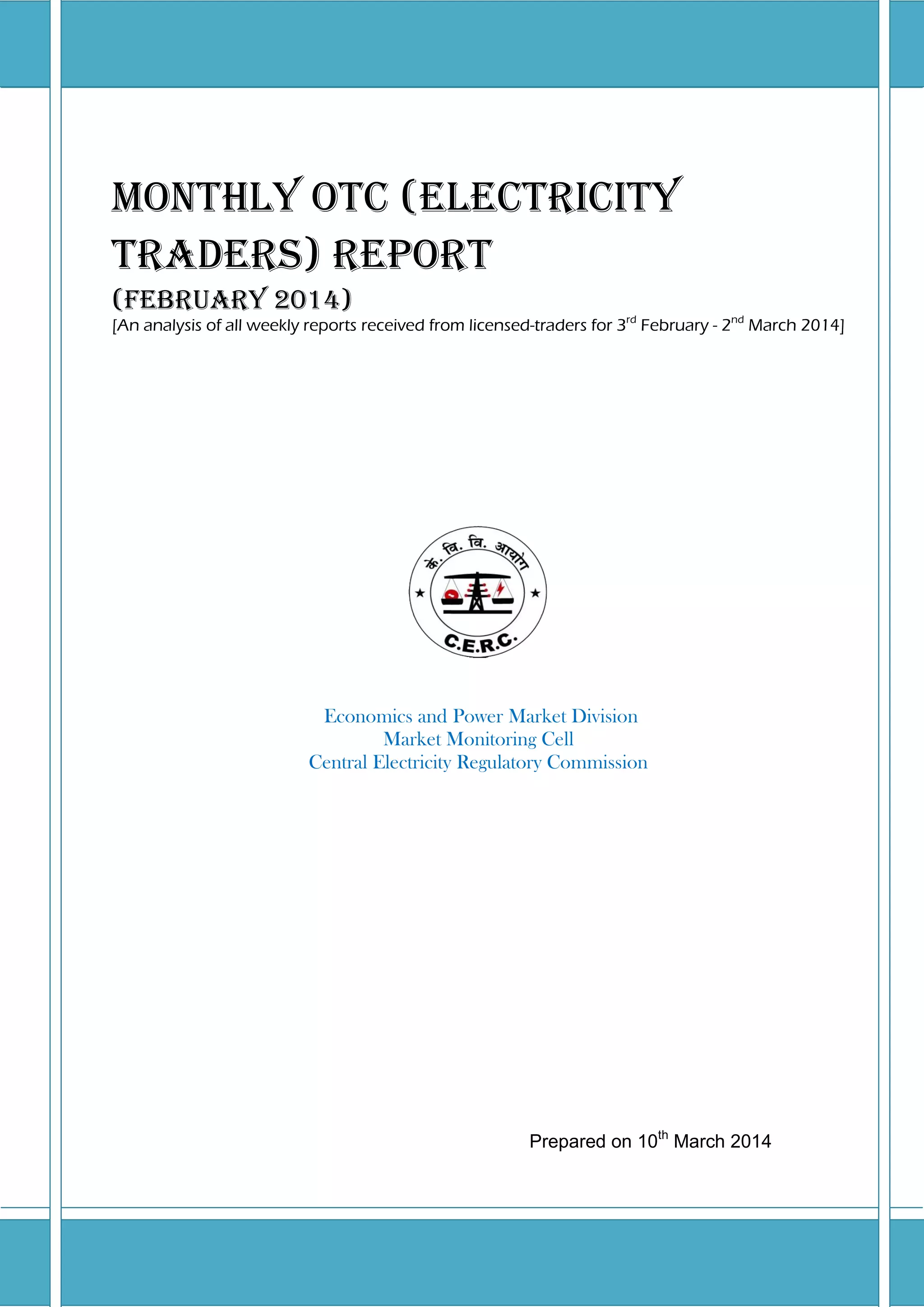 This document provides an analysis of electricity trading in the over-the-counter (OTC) market for February 2014. It finds that the volume and number of contracts decreased compared to January, and prices were higher in the OTC market than power exchanges. A forward price curve is presented based on OTC contracts, and post-facto analysis finds the weighted average delivery price of OTC contracts was consistently higher than daily exchange prices. Annexes provide additional details on contract volumes and prices by week and participating traders.