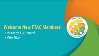 The Miami-Dade TPO Freight Transportation Advisory Committee (FTAC) held a virtual workshop on February 10, 2021, welcoming new members and discussing the MPOAC Freight Priorities Program and its 2021 call for projects. The program allows each MPO to submit up to three freight projects for funding eligibility, emphasizing projects on the state highway system. The next workshop is scheduled for March 10, 2021, with important deadlines outlined for project submissions and approvals.