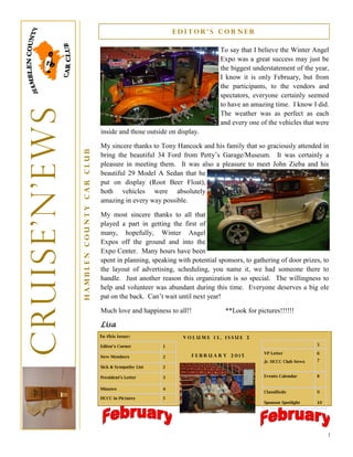 The document provides a summary of the Winter Angel Expo car show that was held recently. It expresses that the car show was a great success, with perfect weather and amazing vehicles on display. It thanks Tony Hancock and John Zieba for bringing their classic cars to display. It also thanks all the club members who volunteered their time to plan and organize the event, saying it was their efforts that led to the show's success. Finally, it expresses excitement for next year's event and thanks everyone who was involved.