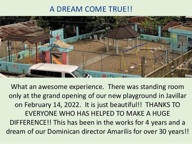 The grand opening of a playground in Javillar on February 14, 2022, marked the culmination of a 30-year dream, significantly supported by local fundraising initiatives. Various community projects were completed, including homes built for families in need and essential donations delivered to families across several communities. Additionally, assistance was provided for children in a school and illness-related financial support was raised for families facing health crises.
