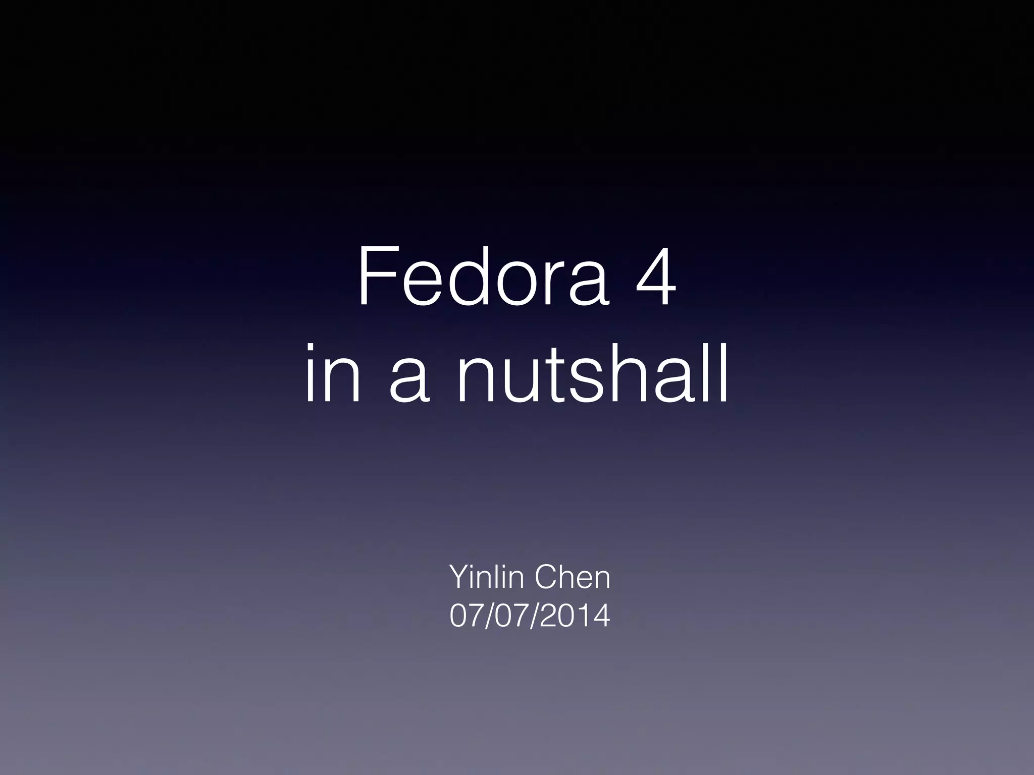 Fedora 4 is an open source repository system that stores objects and uses RDF, SPARQL, and a RESTful HTTP API. It organizes content in a tree structure of nodes within workspaces and was released in beta in June 2014. Developers can contribute code through GitHub and use tools like Eclipse, Pivotal Tracker, and IRC to collaborate on the community-driven project.