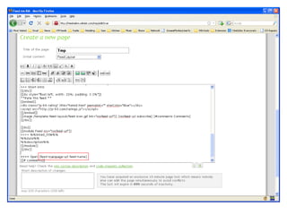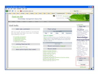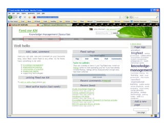 To add a new RSS feed to a knowledge management site: 1. Create a new page and select the Feed layout template. 2. Add a short introduction and the RSS feed URL, replacing placeholders. 3. Add the feed location and site title, replacing additional placeholders. 4. Save the page and tag it with relevant categories like "Blogfeed" or "knowledge-management".