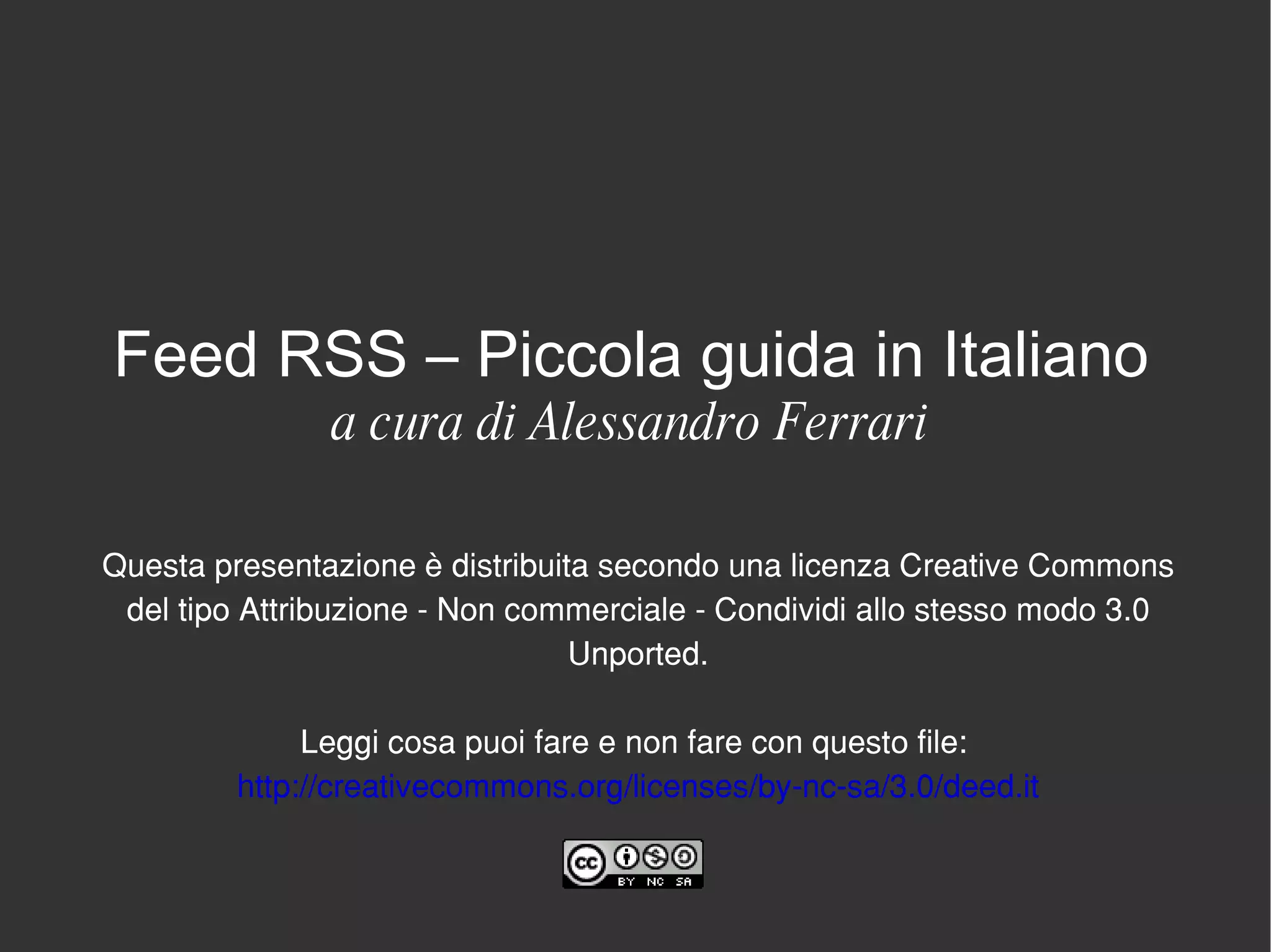 Questo documento è una guida introduttiva sui feed RSS, un formato per la distribuzione di contenuti web che consente di ricevere aggiornamenti senza dover visitare continuamente i siti. Viene discussa l'importanza degli aggregatori, strumenti che consentono di gestire diversi feed RSS in un'unica piattaforma, sia online che stand-alone. Inoltre, vengono forniti esempi di aggregatori online e istruzioni per identificare i feed RSS sui siti web.