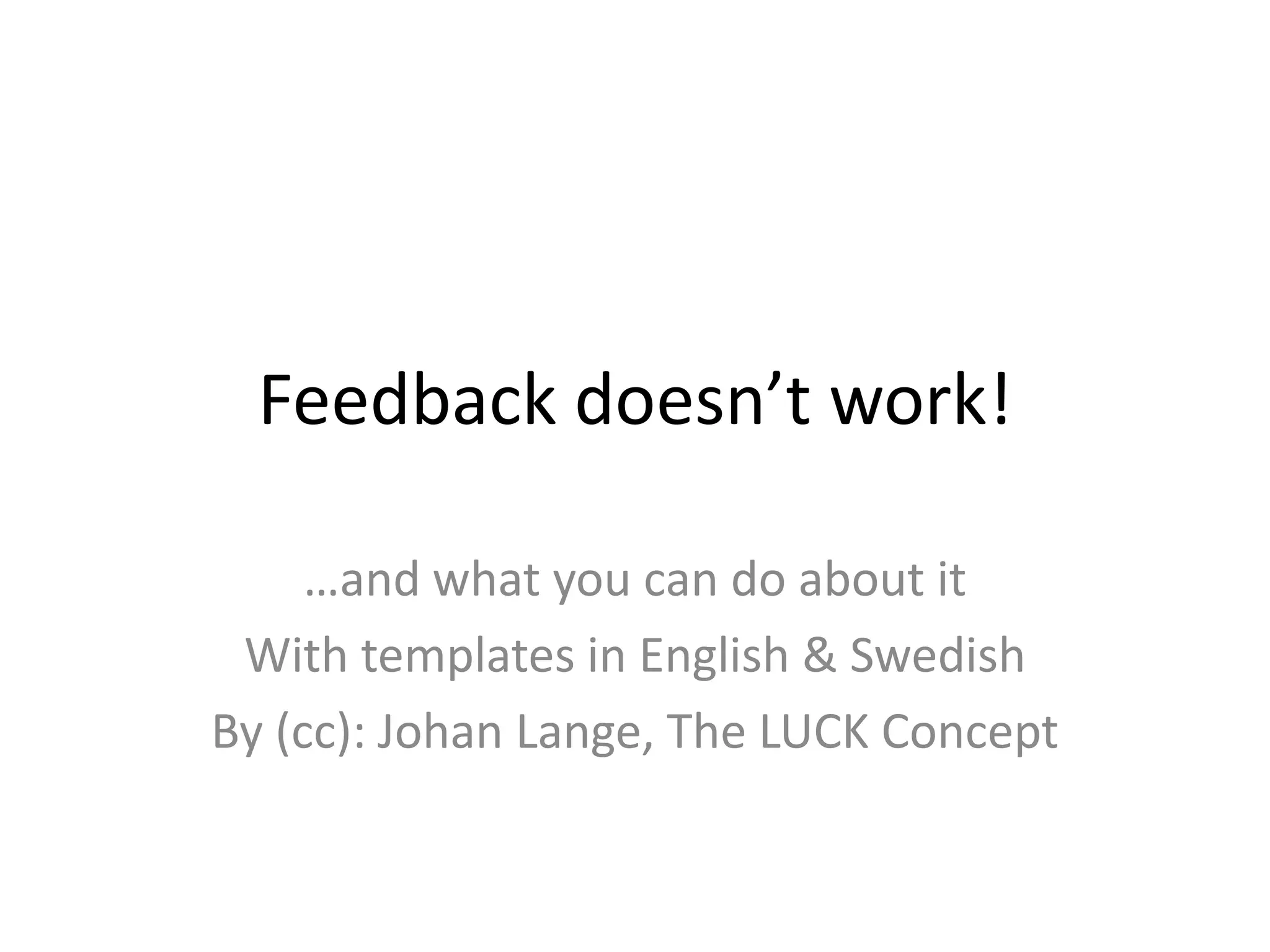 The document discusses the ineffectiveness of traditional feedback and proposes the use of templates for implementing feedback-feedforward-coaching. It emphasizes the importance of collaboration between managers and employees in setting goals and highlights different types of motivation. The author, Johan Lange, advocates for a leadership approach that fosters both extrinsic and intrinsic motivation through effective coaching.