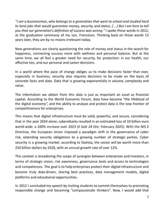 "I am a businessman, who belongs to a generation that went to school and studied hard to land jobs that would guarantee money, security, and status. […] But I am here to tell you that our generation’s definition of success was wrong." I spoke these words in 2012, at the graduation ceremony of my son, Francesco. Thinking back on those words 13 years later, they are by no means irrelevant today.