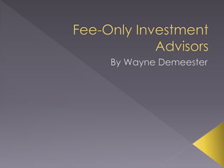 Wayne DeMeester has over 25 years of experience in financial services. He earned an MBA from Brigham Young University and a CIMA designation from Wharton. He currently serves as managing director for Definitive Advisors, a fee-only investment advisor in Washington. Fee-only advisors charge flat rates for their services unlike brokers who earn commissions, removing conflicts of interest when recommending financial products.