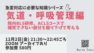 • Obstruction:気道閉塞(出血、外傷など)