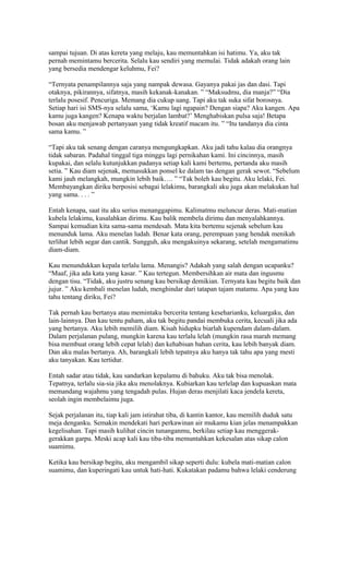 Cerita pendek ini menceritakan tentang Fei, seorang wanita yang akan menikah namun mengalami konflik dengan calon suaminya. Ia berbagi cerita dan keluh kesahnya kepada rekan kerjanya, tokoh utama pria dalam cerita ini, di perjalanan kerja mereka ke luar kota. Tokoh utama pria mendengarkan curahan hati Fei dan memberi nasihat, meski diam-diam menyimpan perasaan untuk Fei. Pada akhir