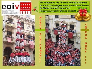 l’Escola Oficial d’Idiomes de Valls us desitgem unes molt bones festes de Nadal i un feliç any nou!! Happy new year!! Bonne année!! M E R J R O Y Y E C U H X R I N S O T Ë M L A S ! ! ! ! !