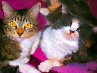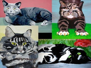 This document contains summaries of various cats and their personalities. It describes cats that are playful, cuddly, curious, and affectionate. Many of the cats have unique personalities, habits, and relationships with other animals or their owners.