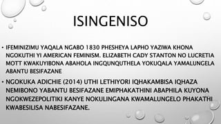 The document discusses feminism and its history. It notes that feminism began in the 1830s in America with Elizabeth Cady Stanton and Lucretia Mott leading one of the first women's rights conventions. Feminist theory aims to challenge societal views of women and promote equality between men and women in politics and rights. The document analyzes several literary works that highlight women's experiences and perspectives, challenging the idea that women could not write. It finds that the works convey women's strength, activism, and belief in their own abilities despite societal expectations. Overall, the document shows how feminism in literature empowered women by portraying them as capable and deserving of equal treatment.