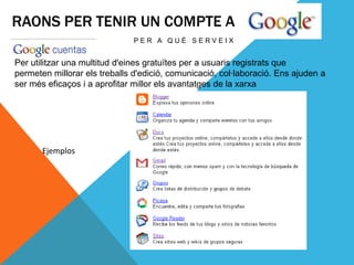 TOTS els serveis gratuïts de Google per a usuaris registrats: Gmail, Google Docs,