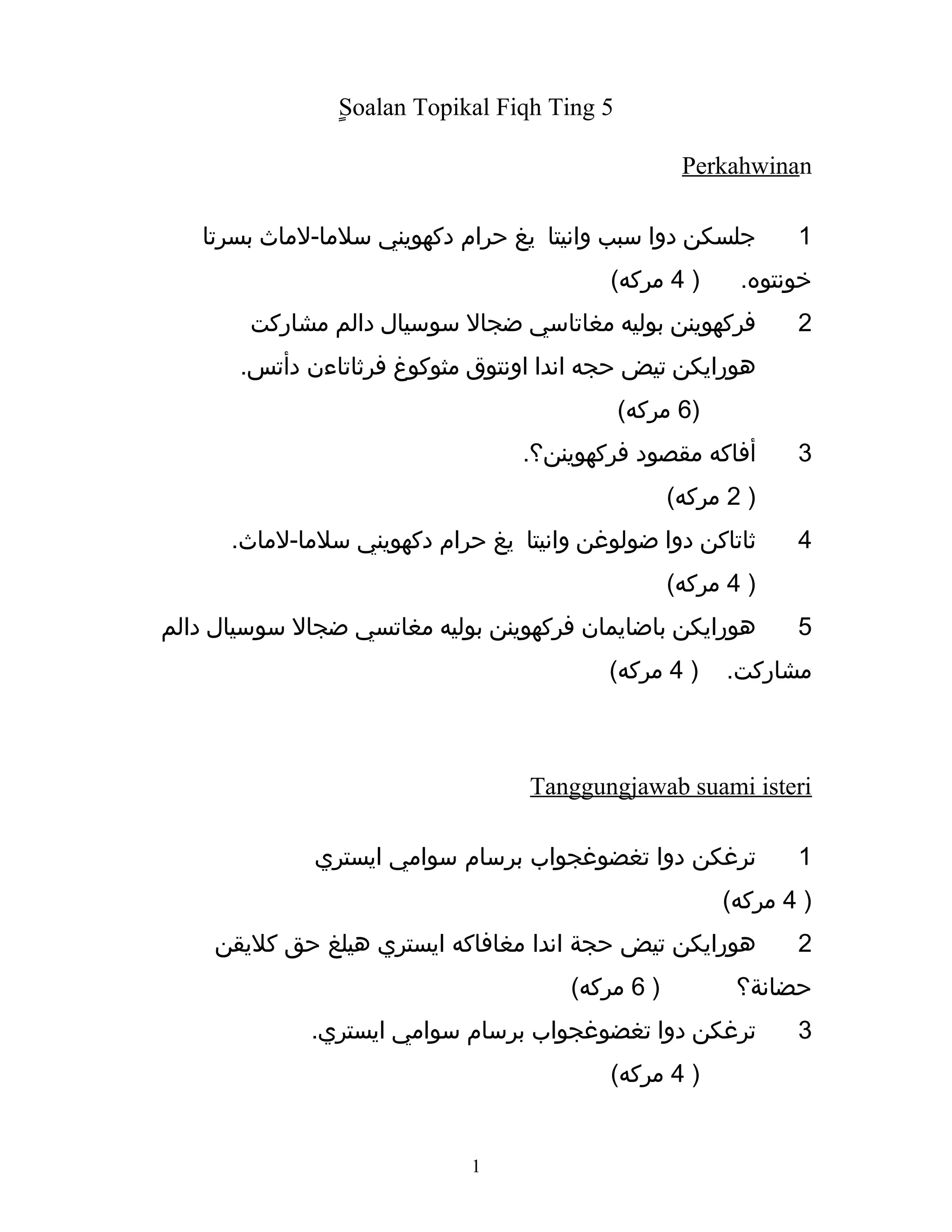 Dokumen ini membincangkan topik fiqh mengenai perkahwinan dan tanggungjawab suami isteri, serta proses pembubaran perkahwinan dalam konteks undang-undang syariah di Malaysia. Ia merangkumi isu seperti hak perwalian dan tempoh iddah, serta peranan mahkamah syariah dalam menyelesaikan pertikaian berkaitan perkahwinan. Selain itu, dokumen ini juga menyentuh tentang konsep kehakiman dan jenayah dalam Islam.