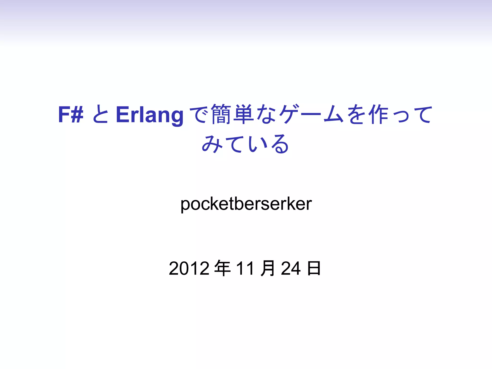 F#+Erlangで簡単なシューティングゲームを作ってみている 1. F# と Erlang で簡単なゲームを作って