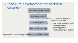 • This culture is then used as inoculum in small scale fermentation processes