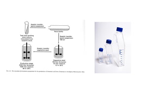 • Usually the inoculum at its log phase of growth is transferred aspetically to production