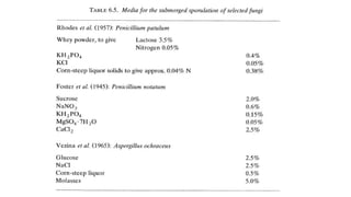 • Composition of inoculum medium and production medium is usually kept identical to