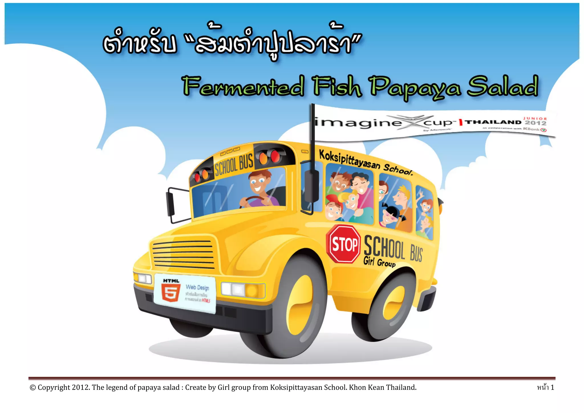 The legend of papaya salad : Create by Girl group from Koksipittayasan School. Khon Kean Thailand. หนา 1 ้