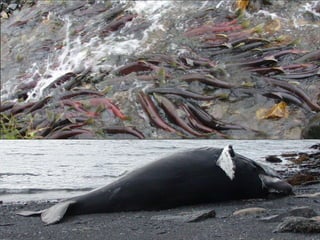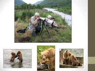 This document provides an overview of the Kodiak National Wildlife Refuge in Alaska. It discusses the refuge's establishment in 1941 by President Roosevelt to protect brown bears and other wildlife on Kodiak and Uganik Islands. It highlights some of the refuge's current research projects studying rare seabirds, brown bears, and mountain goats. It also promotes the refuge's visitor center and educational programs as a way for the public to learn about conservation.