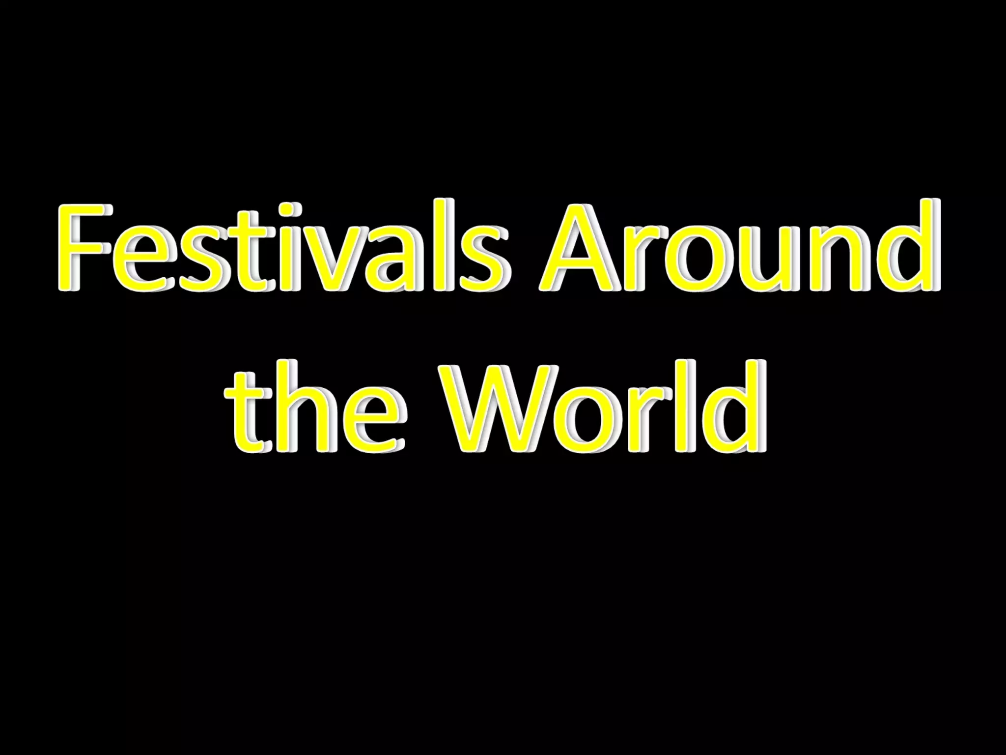 The document summarizes several festivals celebrated around the world: the Chinese New Year and Lantern Festival in China, the Songkran Festival in Thailand where people throw water, Carnival in Brazil celebrated before Lent, Eid al-Fitr marking the end of Ramadan in Islam, Hanami viewing cherry blossoms in Japan, and the Sinulog festival in the Philippines commemorating Catholicism.