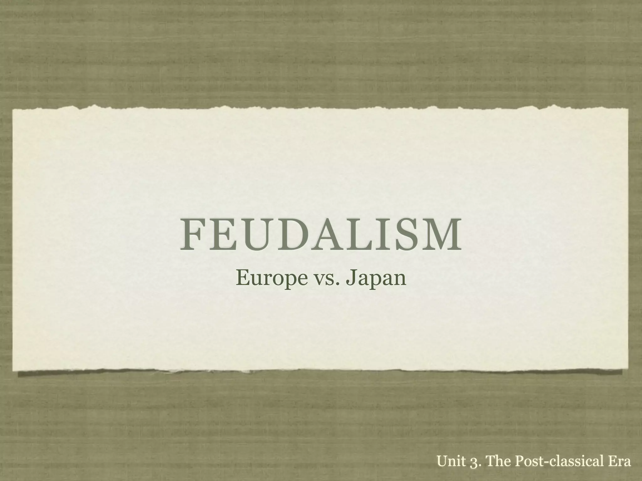 Feudalism developed differently in Europe and Japan. In Europe, feudalism emerged after the fall of the Western Roman Empire and was characterized by local lords granting land to vassals who owed military service. In Japan, the emperor remained the primary authority but delegated power to shoguns and daimyos, who administered their lands through a system of vassals. Both systems featured hierarchical social structures and political decentralization under local lords.