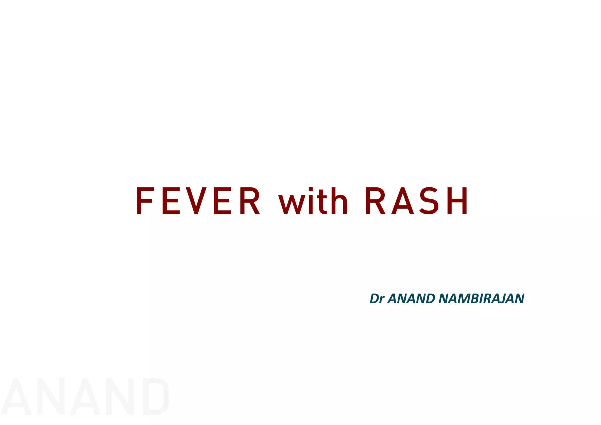 This document discusses fever with rash and provides details on various conditions that can cause fever and rash. It describes the causes of fever as being pyrogens produced during infection or inflammation. Rash is described as being caused by infectious organisms multiplying in the skin, toxins acting on skin, autoimmune destruction, or vasculature involvement. Several conditions are then discussed in detail, including their causative agents, hosts, modes of transmission, symptoms, rashes, complications, diagnoses, and treatments. These conditions include measles, rubella, erythema infectiosum, roseola, infectious mononucleosis, primary HIV infection, and epidemic typhus.