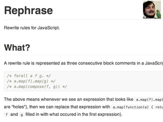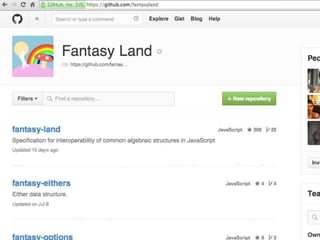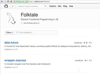 This document provides examples of functional JavaScript code using point-free style and typeclasses. It includes code snippets demonstrating: